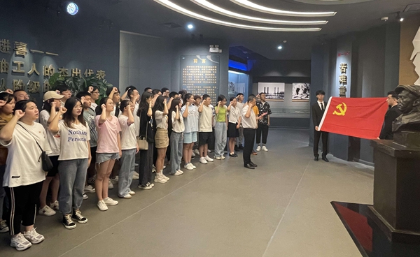 講黨課比賽開始前,學校組織各院(系)新發(fā)展黨員代表在鐵人王進喜紀念館集中進行了入黨宣誓活動,在黨委組織部常務副部長種宇宏老師的帶領下,全體新發(fā)展黨員代表面對黨旗,高舉右手莊嚴宣誓,表達了對黨的鄭重承諾和為黨的事業(yè)奮斗終生的決心。