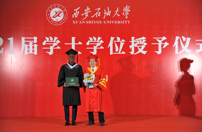 627上午,西安石油大學(xué)2021屆優(yōu)秀畢業(yè)生代表學(xué)士學(xué)位授予儀式在鄠邑校區(qū)弘石學(xué)術(shù)報(bào)告廳隆重舉行。校長(zhǎng)、校學(xué)位評(píng)定委員會(huì)主席李天太,校黨委副書記、校學(xué)位評(píng)定委員會(huì)副主席張木,副校長(zhǎng)、校學(xué)位評(píng)定委員會(huì)副主席陳軍斌出席儀式。鄠邑校區(qū)管理辦公室、學(xué)生工作處、保衛(wèi)處、教務(wù)處等相關(guān)職能部門負(fù)責(zé)人、各院(系)負(fù)責(zé)人、291名優(yōu)秀畢業(yè)生代表及其家人參加授位儀式。學(xué)士學(xué)位授予儀式由校學(xué)位評(píng)定委員會(huì)副主席張木主持。