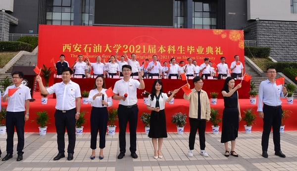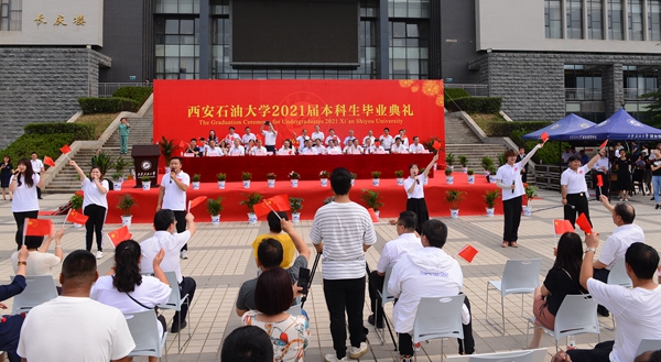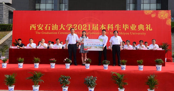 副校長(zhǎng)陳軍斌宣讀了《西安石油大學(xué)關(guān)于2021屆本科學(xué)生準(zhǔn)予畢業(yè)、頒發(fā)畢業(yè)證和授予學(xué)士學(xué)位的決定》,副校長(zhǎng)楊戰(zhàn)社宣讀了《西安石油大學(xué)關(guān)于表彰2021屆優(yōu)秀畢業(yè)生的決定》,校黨委副書記雷西合宣讀了《西安石油大學(xué)校友總會(huì)關(guān)于聘任2021屆年級(jí)校友理事的決定》。與會(huì)校領(lǐng)導(dǎo)為優(yōu)秀畢業(yè)生代表頒發(fā)了榮譽(yù)證書,為年級(jí)理事代表頒發(fā)了聘任證書和紀(jì)念品,并向畢業(yè)生代表贈(zèng)送了“原油”印章紀(jì)念品。
