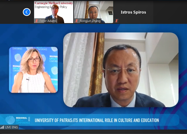 據(jù)悉,每年在帕特雷市舉行的希臘區(qū)域發(fā)展論壇是希臘中央政府、地方政府、學術(shù)界和商界代表之間對話的公共平臺。希臘總統(tǒng)Katerina Sakellaropoulou、總理Kyriakos Mitsotakis、歐盟委員會副主席argaritis Schinas及多個部門的部長出席今年的論壇。此論壇的2021教育分論壇由帕特雷大學主辦,除我校張榮軍副校長外,帕特雷大學學術(shù)和國際事務(wù)副校長Dionissios Mantzavinos、希臘教育部高等教育秘書長Apostolos Dimitropoulos、美國卡耐基梅隆大學教授Peter Adams等六位嘉賓先后發(fā)言。