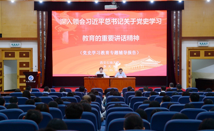 5月14日下午,校長、黨委副書記李天太在雁塔校區(qū)學術(shù)報告廳作了題為《深入領(lǐng)會習近平總書記關(guān)于黨史學習教育的重要講話精神》及《國際國內(nèi)石油天然氣與新能源發(fā)展形勢及莘莘學子的擔當使命》的黨史學習教育專題輔導報告。學生工作部、研究生工作部、團委全體人員,全體輔導員,雁塔校區(qū)研究生黨員代表、本科生代表等共300余人聆聽了報告。張木副書記主持報告會。
