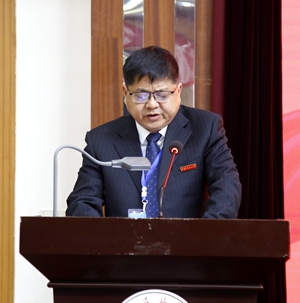 李天太校長(zhǎng)代表學(xué)校作了《開啟新征程勇?lián)率姑鼕^力譜寫學(xué)校高質(zhì)量發(fā)展新篇章》的工作報(bào)告。他首先從七個(gè)方面,對(duì)學(xué)?!笆濉逼陂g的主要工作進(jìn)行了回顧:一是學(xué)校全面從嚴(yán)治黨深入推進(jìn);二是學(xué)校學(xué)科建設(shè)取得歷史性躍升;三是學(xué)校師資隊(duì)伍建設(shè)成效顯著;四是學(xué)??蒲袑?shí)力持續(xù)提升;五是學(xué)校人才培養(yǎng)質(zhì)量持續(xù)提高;六是學(xué)校對(duì)外合作交流日益廣泛;七是學(xué)校服務(wù)保障能力持續(xù)提升。