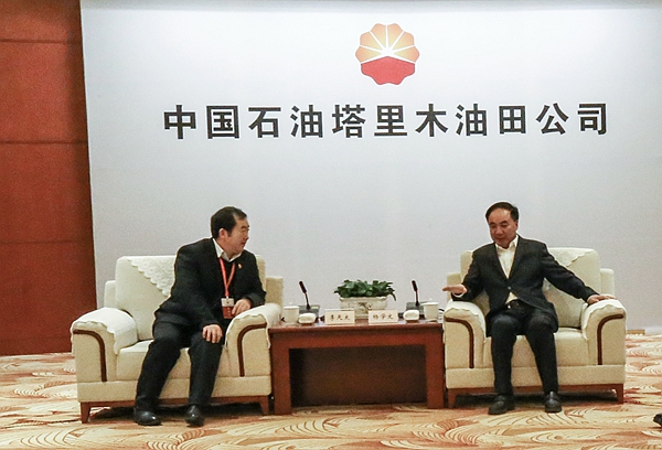22日下午,李天太校長與塔里木油田公司黨工委書記、總經(jīng)理楊學(xué)文,塔里木油田公司副總經(jīng)理李亞林一行進行座談,雙方圍繞強化科研聯(lián)盟建設(shè)、強化深層油氣勘探技術(shù)研究展開深入交流。