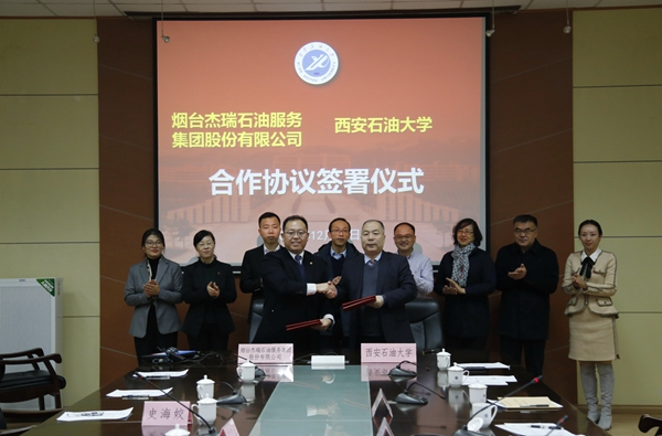 124日下午,我校與煙臺杰瑞石油服務(wù)集團(tuán)股份有限公司校企合作框架協(xié)議簽約儀式在雁塔校區(qū)第一會議室舉行。我校副校長陳軍斌,杰瑞股份副總裁謝猛以及雙方相關(guān)部門負(fù)責(zé)人參加儀式。