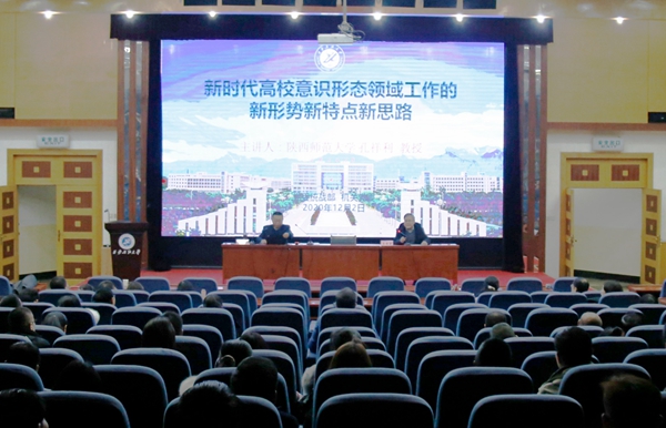 122日下午,根據(jù)學(xué)校黨委工作安排,黨委統(tǒng)戰(zhàn)部、機關(guān)黨委邀請陜西師范大學(xué)孔祥利教授,在雁塔校區(qū)學(xué)術(shù)報告廳作了題為《新時代高校意識形態(tài)領(lǐng)域工作的新形勢新特點新思路》的專題報告。陳軍斌副校長出席報告會。報告會由黨委統(tǒng)戰(zhàn)部部長、機關(guān)黨委書記吳復(fù)雷主持。