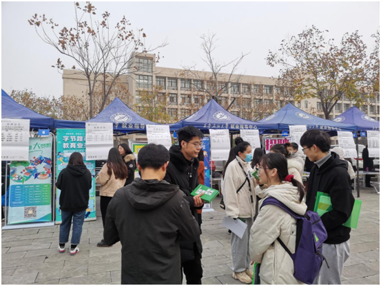 1128日上午,我校在鄠邑校區(qū)江漢林廣場舉行了2021屆財管文外畢業(yè)生校園招聘會。到場單位60余家,參會代表100余人。