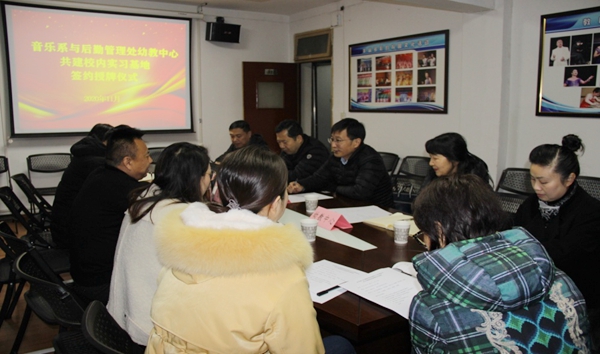 為推進(jìn)校內(nèi)協(xié)同育人機(jī)制,1125日上午,我校音樂系與后勤管理處幼教中心共建校內(nèi)實(shí)習(xí)基地簽約授牌儀式在音樂系會(huì)議室舉行。副校長蘇文甫,后勤管理處及幼教中心、音樂系相關(guān)負(fù)責(zé)人參加會(huì)議。儀式由音樂系黨總支書記孟開元主持。