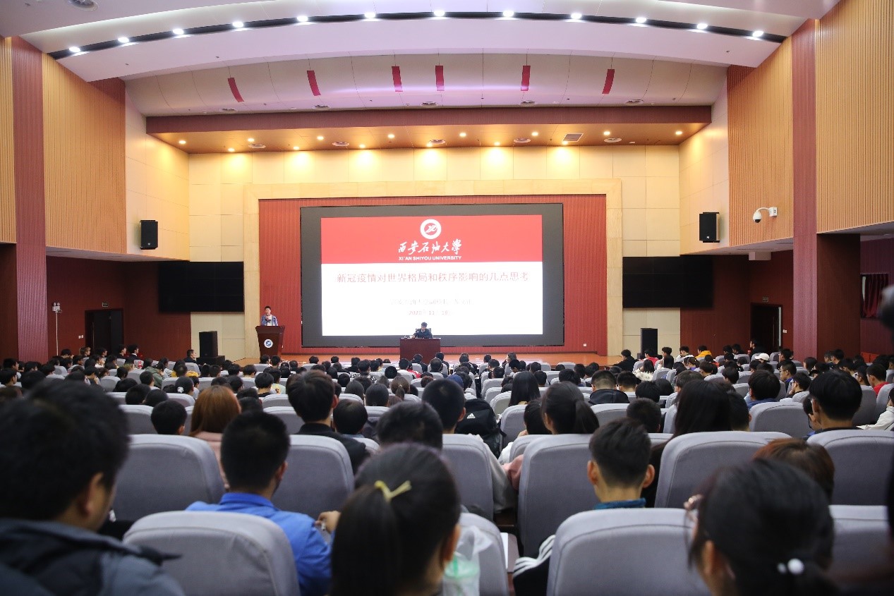 11月18日晚,蘇文甫副校長(zhǎng)以“新冠疫情對(duì)世界格局和秩序影響的幾點(diǎn)思考”為題,在鄠邑校區(qū)弘石報(bào)告廳為計(jì)算機(jī)學(xué)院四百余名師生講授了一堂生動(dòng)精彩的專題黨課。