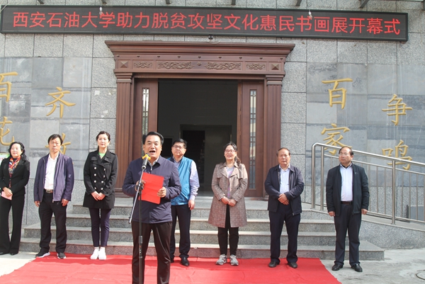 金秋送爽迎嘉賓,漆水含情唱和諧。929日,我校助力永壽縣脫貧攻堅(jiān)文化惠民書(shū)畫(huà)展開(kāi)幕式在永壽縣文化旅游局舉行。此次書(shū)畫(huà)展由西安石油大學(xué)工會(huì),永壽縣文游局、教育局、文聯(lián)等單位聯(lián)合舉辦。我??倳?huì)計(jì)師樊曉民、工會(huì)負(fù)責(zé)人;永壽縣人民政府副縣長(zhǎng)任各參加開(kāi)幕式。
