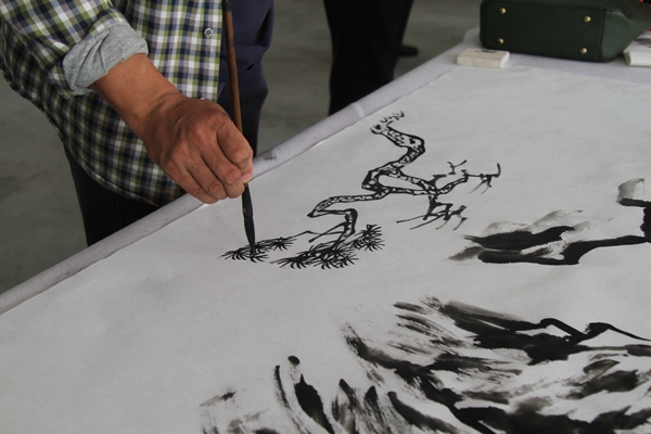 在開(kāi)幕式之后,西安石油大學(xué)教職工書(shū)畫(huà)協(xié)會(huì)和永壽縣書(shū)協(xié)、美協(xié)會(huì)員們開(kāi)展了現(xiàn)場(chǎng)交流活動(dòng)。書(shū)畫(huà)愛(ài)好者在現(xiàn)場(chǎng)潑墨揮毫,創(chuàng)作了一幅幅精美作品,吸引了在場(chǎng)觀眾的駐足欣賞。