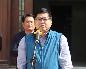 我??倳?huì)計(jì)師樊曉民宣布書(shū)畫(huà)展開(kāi)幕。
