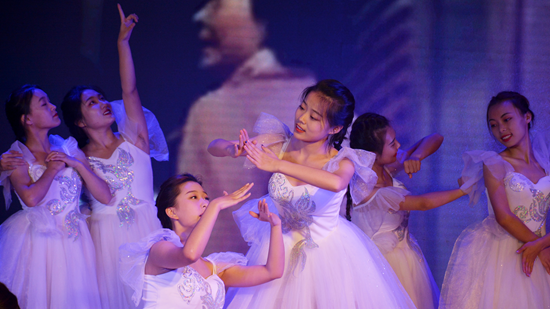 節(jié)目全長38分鐘,分為四個(gè)部分。舞蹈《一葷一素》講述了一個(gè)感人的親情故事,海味山珍比不過一葷一素,油鹽醬醋是母親細(xì)密的叮囑,世間最溫暖的就是親情;舞蹈《映山紅》用柔美細(xì)膩的舞蹈、悅耳動(dòng)聽的旋律詮釋了人民群眾對(duì)紅軍的無限熱愛與不舍之情以及對(duì)美好未來的憧憬和向往;朗誦《不忘初心 共繪西石大藍(lán)圖》用聲音弘揚(yáng)校風(fēng)、講述校史、傳遞時(shí)代精神,表達(dá)了我校學(xué)子不忘初心、努力拼搏的決心;音樂系主任程輝演唱的歌曲《跟你走》,表達(dá)了對(duì)黨和國家的熱愛。