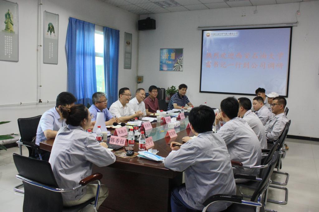 卿勇副總經(jīng)理代表公司對(duì)雷西合副書記一行來訪表示歡迎,對(duì)學(xué)校多年來對(duì)第六建設(shè)公司各方面的支持表示感謝。他結(jié)合公司宣傳片介紹了公司50多年來的發(fā)展歷程和取得的輝煌成就,對(duì)我校畢業(yè)生在公司的良好表現(xiàn)及為公司發(fā)展所做出的突出貢獻(xiàn)給予了高度評(píng)價(jià),希望與學(xué)校保持良好關(guān)系并開展更深入合作,并承諾盡可能多接收西安石油大學(xué)畢業(yè)生到公司工作。