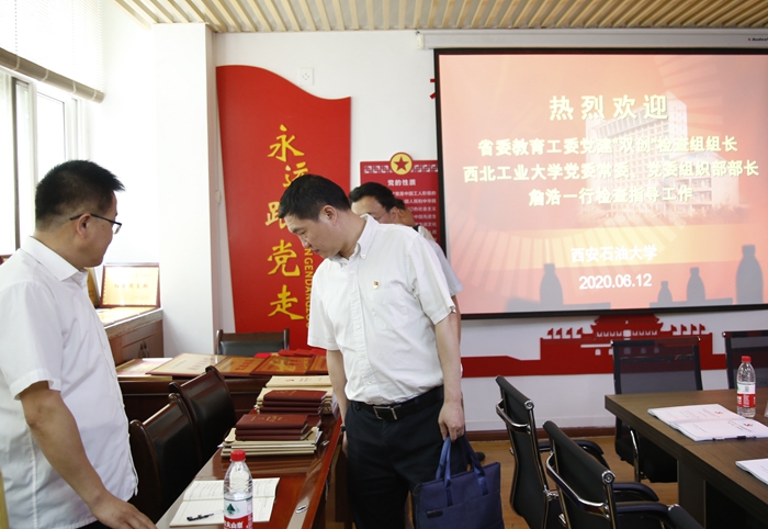 根據(jù)省委教育工委工作安排,612日下午,省委教育工委黨建“雙創(chuàng)”評估驗收工作組第二組組長,西北工業(yè)大學(xué)黨委常委、黨委組織部部長詹浩等一行4人前來我校檢查指導(dǎo)學(xué)校黨建示范創(chuàng)建和質(zhì)量創(chuàng)優(yōu)工作完成情況。檢查驗收工作會在雁塔校區(qū)第一會議室召開,校黨委副書記雷西合主持會議。學(xué)校相關(guān)職能部門負(fù)責(zé)人,入選教育部和全省高校黨建標(biāo)桿院系和樣板支部培育創(chuàng)建單位負(fù)責(zé)人及相關(guān)工作人員參加會議。