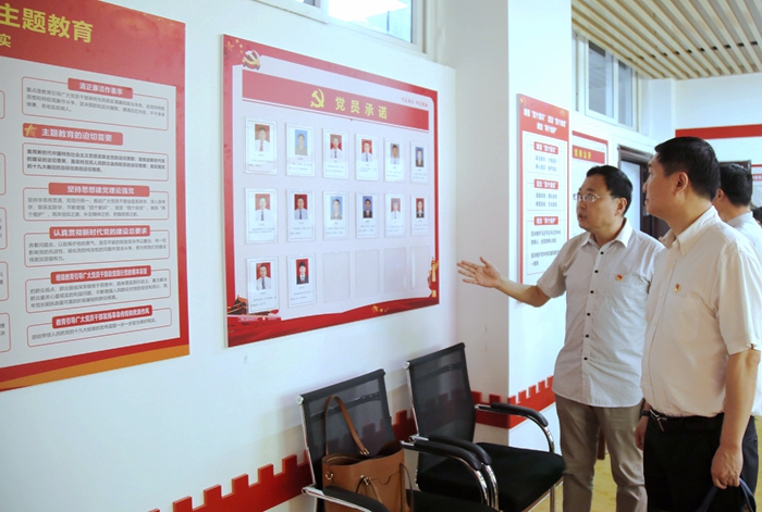 會前,評估驗收工作組一行前往地球科學(xué)與工程學(xué)院黨員活動室,對我校“雙創(chuàng)”建設(shè)單位的黨建陣地、成果展示和資料匯編進(jìn)行了實(shí)地查看,并觀看了示范點(diǎn)建設(shè)微視頻。