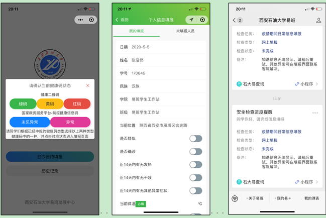 校易班發(fā)展中心組織研發(fā)團隊僅用兩天時間,于2月2日正式研發(fā)完成了滿足學校需求的學生健康信息登記小程序,并于2月7日調試完畢正式上線使用,3月20日和4月27日又分別進行了功能升級。信息登記小程序有效滿足了學生信息填報和學校信息收集分析的需求,極大提升了院(系)工作開展的效率,減輕了一線輔導員的工作負擔。截至目前,我校自主開發(fā)小程序日活躍度均保持在兩萬人次以上,為我校日后利用網(wǎng)絡平臺開展思政教育提供了流量支撐。