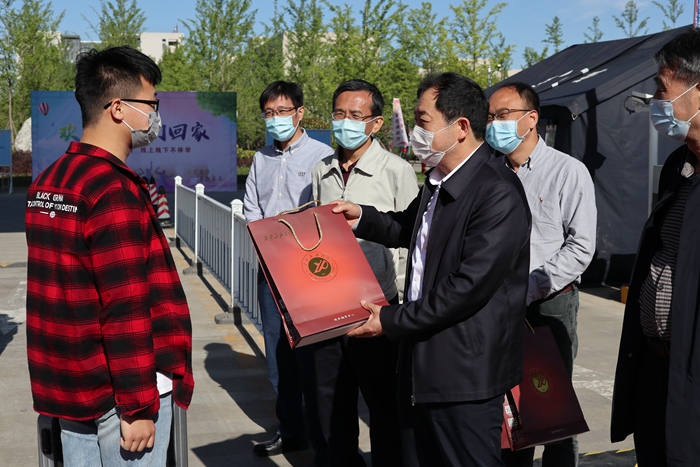 上午8點(diǎn),校長李天太、校黨委副書記張木、副校長蘇文甫及相關(guān)部門負(fù)責(zé)人在鄠邑校區(qū)東大門迎接返校同學(xué)歸來。李天太校長為率先返校的9名同學(xué)送上健康禮包,詳細(xì)了解大家的假期生活、線上學(xué)習(xí)、畢業(yè)設(shè)計(jì)(論文)進(jìn)展、就業(yè)考研等情況,并提醒大家返校后繼續(xù)注意科學(xué)防護(hù)、理性應(yīng)對(duì),以最好的狀態(tài)迎接校園生活的到來。