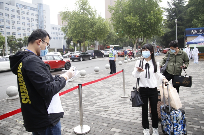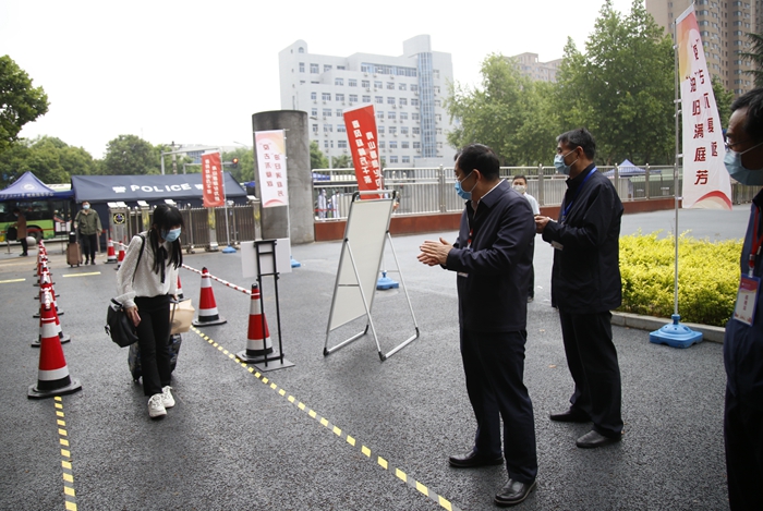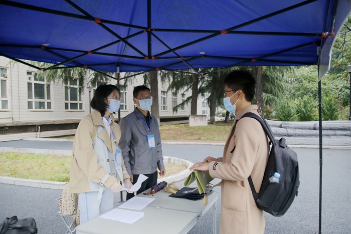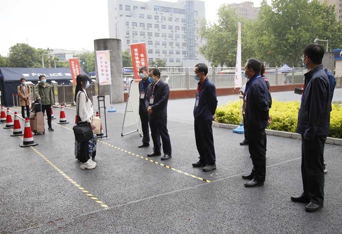 5月7日上午9時,首位返校學(xué)生、經(jīng)濟(jì)管理學(xué)院研究生劉雪夢順利抵達(dá)學(xué)校。在現(xiàn)場工作人員的指引下,劉雪夢依次完成了更換口罩、測量體溫、行李和手部消毒、核查健康碼(綠碼)、身份核實(shí)等流程后順利進(jìn)入校園。校黨政領(lǐng)導(dǎo)賽云秀、李天太、張木、李華、蘇文甫、程永清先后到報(bào)到區(qū)迎接返校同學(xué),校領(lǐng)導(dǎo)與同學(xué)們親切交談,對返校同學(xué)表示歡迎,深入了解大家的思想狀況、身體狀況、假期學(xué)習(xí)生活、論文撰寫情況、就業(yè)情況。校領(lǐng)導(dǎo)鼓勵同學(xué)們堅(jiān)定戰(zhàn)勝疫情的信心,嚴(yán)格落實(shí)學(xué)校、學(xué)院各項(xiàng)疫情防控措施,同時要珍惜最后的校園時光,順利完成學(xué)業(yè)任務(wù)。