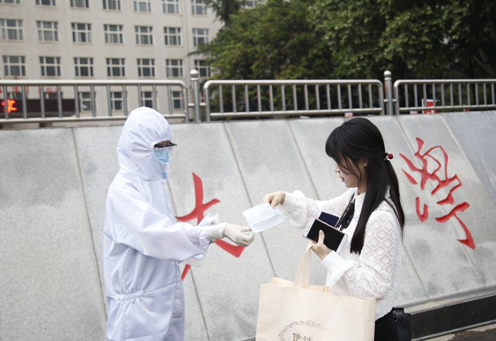 在各學(xué)院的報(bào)到點(diǎn),同學(xué)們還領(lǐng)取了學(xué)校為大家準(zhǔn)備的放有口罩、溫度計(jì)、酒精消毒棉片等防護(hù)用品的防疫愛心包?!敖K于回到了久別的校園,感覺非常親切,學(xué)校的安排非常細(xì)致,還給我們免費(fèi)發(fā)送了一次性口罩和體溫計(jì),既細(xì)心又貼心。學(xué)校所做的一切復(fù)學(xué)準(zhǔn)備都很充分,我要為學(xué)校點(diǎn)贊?!笔凸こ虒W(xué)院研究生劉毅說。