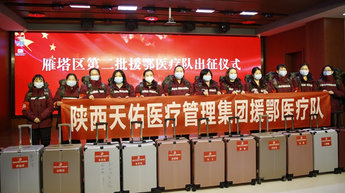 18日上午九點,宋彥霞等15名醫(yī)護(hù)人員在西安天佑醫(yī)院參加了雁塔區(qū)第二批援鄂醫(yī)療隊出征儀式,隨后將乘坐包機(jī)火速趕赴湖北地區(qū)投入救治工作。