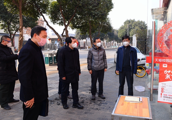 2月11日上午,學校疫情防控工作領導小組組長、校長李天太,領導小組副組長、校黨委副書記張木,領導小組副組長、副校長蘇文甫帶隊檢查了校園生活物資供應和防控措施落實情況,慰問一線值守人員,對疫情防控工作提出要求。