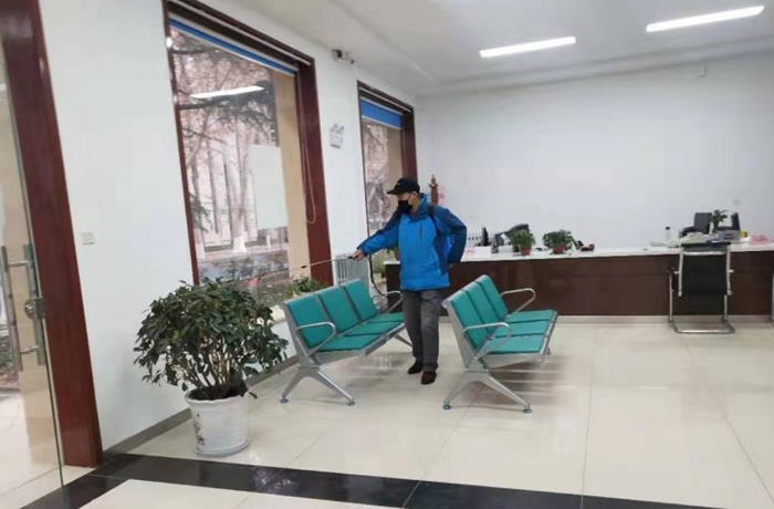 后勤處要求物業(yè)、餐飲在崗員工佩戴醫(yī)用口罩,所有在崗人員必須每天進(jìn)行體溫檢測。從事校園內(nèi)消毒工作的人員,在工作期間必須佩戴醫(yī)用口罩和橡膠手套,穿戴經(jīng)過消毒的工裝,對每天工作領(lǐng)取的藥物用量進(jìn)行登記。對兩校區(qū)值班食堂桌面、椅面使用84液擦抹消毒,對后廚的地面、設(shè)備進(jìn)行沖洗消毒,對食堂周圍地面使用過氧乙酸噴灑消毒,每天不少于兩次。每天定時對雁塔校區(qū)11棟、鄠邑校區(qū)39棟樓宇值班室及一層門廳區(qū)域、家屬樓內(nèi)的所有公共衛(wèi)生區(qū)域(含單元門口或一層門廳、電梯轎廂,重點對所有家屬樓樓宇一樓的單元門按鍵、門把手、扶手以及電梯按鈕等每日擦拭2遍),對垃圾桶、站、點進(jìn)行定期打藥消毒。