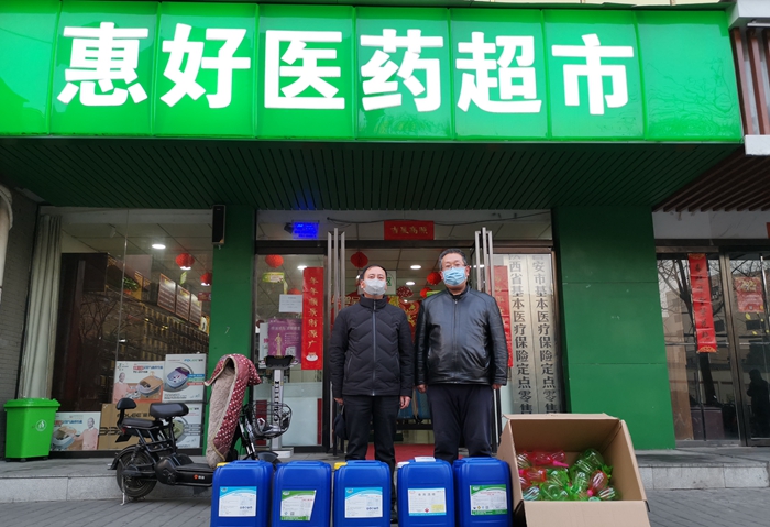 2月4日,西安惠好醫(yī)藥有限公司總經(jīng)理喬元平向我校捐贈了醫(yī)療防控物資。這批物資包括酒精20公斤、過氧乙酸50公斤、84消毒液50公斤、體溫計10支、測溫槍2支、噴壺43個,將全部用于學校疫情防控第一線。這批物資是我校接受的首批社會愛心捐贈,對于西安惠好醫(yī)藥有限公司總經(jīng)理喬元平的善舉,國有資產(chǎn)處處長侯琦表達了誠摯的感謝。