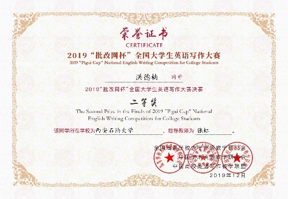 [捷報快遞]我校學(xué)生在2019“批改網(wǎng)杯”全國大學(xué)生英語寫作大賽中獲佳績