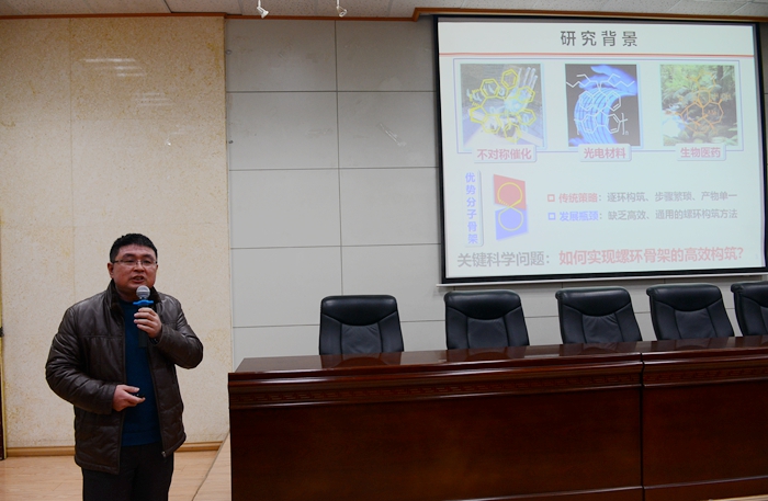 成立儀式結(jié)束后,與會專家就《抽油機(jī)減速器半流體潤滑劑產(chǎn)品標(biāo)準(zhǔn)》進(jìn)行了審定。同時(shí)會議還邀請西北大學(xué)化學(xué)與材料學(xué)院院長、國家杰出青年基金獲得者欒新軍教授作了題為“螺環(huán)構(gòu)筑的新策略與新方法”的報(bào)告,我校師生代表120余人現(xiàn)場聆聽。