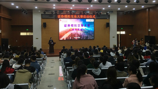 2.了解企業(yè)用人需求,開設(shè)有針對(duì)性的專業(yè)競(jìng)賽。為擬參與證券投資的同學(xué)搭建一個(gè)模擬證券交易的平臺(tái)和環(huán)境,進(jìn)行專業(yè)知識(shí)教育和模擬交易,幫助同學(xué)們盡快熟悉證券交易規(guī)則,為后續(xù)的學(xué)習(xí)和工作打下良好基礎(chǔ)。11月4日,經(jīng)濟(jì)管理學(xué)院聯(lián)合華鑫證券主辦,經(jīng)濟(jì)系教工黨支部和經(jīng)濟(jì)系學(xué)生黨支部聯(lián)合承辦的證券模擬交易大賽正式啟動(dòng)。啟動(dòng)儀式在鄠邑校區(qū)經(jīng)管人文樓118多功能廳舉行。本次大賽的啟動(dòng)就是要給學(xué)生合理“增負(fù)”,這不僅有助于學(xué)生們做到知行合一,將理論知識(shí)轉(zhuǎn)化為實(shí)踐能力,也有助于專業(yè)建設(shè)和學(xué)科發(fā)展。