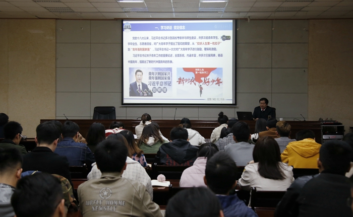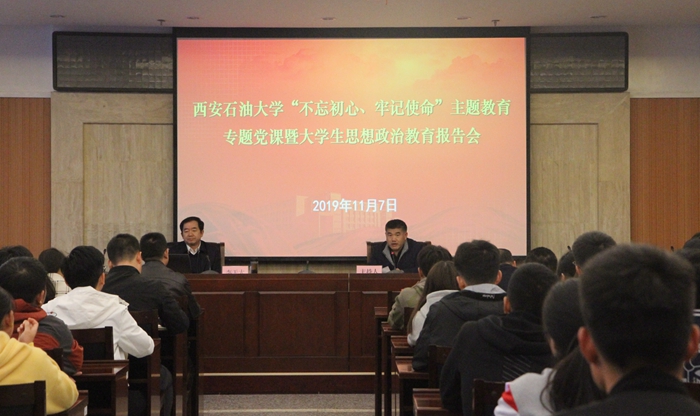 根據(jù)“不忘初心、牢記使命”主題教育部署安排,11月7日下午、8日下午,校長(zhǎng)李天太以《堅(jiān)定信念勇于擔(dān)當(dāng)立志成才》為題,分別在鄠邑校區(qū)、雁塔校區(qū)為本科生、研究生講授了主題教育專題黨課暨思想政治教育報(bào)告會(huì)。本科生報(bào)告會(huì)由鄠邑校區(qū)管理辦公室主任覃彪主持,研究生報(bào)告會(huì)由研究生工作部部長(zhǎng)高榮芳主持。