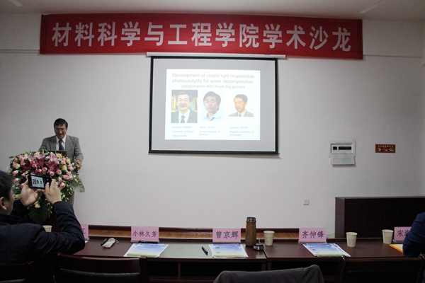 學(xué)術(shù)沙龍第二階段由學(xué)校高層次引進人才呂英博士主持,京都工藝纖維大學(xué)小林久芳教授作了題為“DFT based studies for heterogeneous catalysis and surface reaction”的報告;浙江理工大學(xué)李仁宏副教授作了題為“化學(xué)場驅(qū)動生物質(zhì)小分子催化重整制氫及串聯(lián)降解有機污染物”的報告。