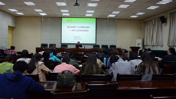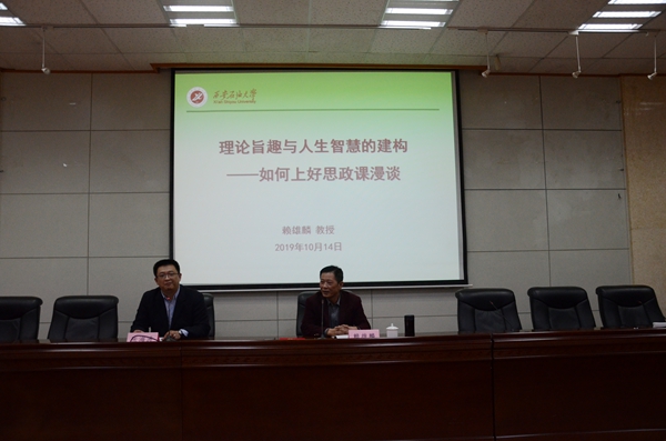 聘任儀式結(jié)束后,賴雄麟教授為馬院師生作了題為《理論旨趣與人生智慧的建構(gòu)——如何上好思政課漫談》的學(xué)術(shù)報(bào)告。他從我們?yōu)槭裁葱枰枷胝谓逃?、思想政治教育的性質(zhì)、如何上好思想政治教育三個(gè)方面進(jìn)行了精彩地講解,并與參會(huì)師生進(jìn)行了互動(dòng)交流。