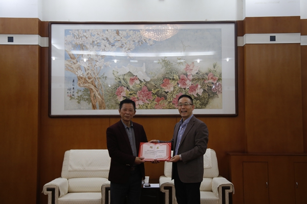 校黨委副書記雷西合對(duì)賴雄麟教授的到來表示歡迎,對(duì)賴教授受聘為我校兼職教授表示感謝,希望賴教授能進(jìn)一步提升我校馬克思主義學(xué)院的學(xué)科建設(shè)和教學(xué)科研水平,并為賴雄麟教授頒發(fā)了兼職教授聘書。