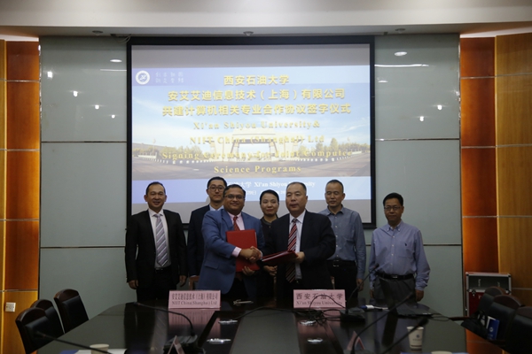9月29日下午,我校與印度安艾艾迪信息技術(shù)有限公司(NIIT)簽訂共建計算機(jī)相關(guān)本科專業(yè)正式合作協(xié)議。陳軍斌副校長和NIIT公司全球副總裁兼中國區(qū)總裁柯謀·杜博(Kamal Dhuper)分別代表學(xué)校和NIIT公司在合作協(xié)議上簽字。我校計算機(jī)學(xué)院、教務(wù)處、國際交流與合作處,以及NIIT公司中國區(qū)、西北地區(qū)負(fù)責(zé)人參加簽字儀式。