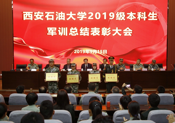 副校長陳軍斌宣讀了學?!蛾P于表彰2019級本科生軍訓工作先進集體和優(yōu)秀個人的決定》。總會計師樊曉民為軍訓旅旅部優(yōu)秀干部頒獎。