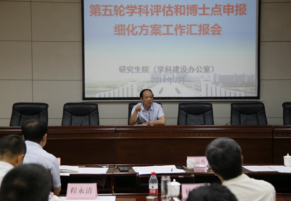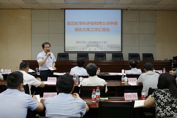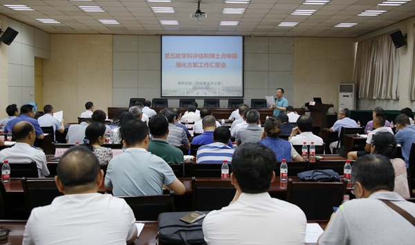 會上,高教研究與評估中心負責人匯報了院(系)發(fā)展數(shù)據(jù)檢測基本信息統(tǒng)計情況。研究生院(學科建設(shè)辦公室)負責人匯報了第五輪學科評估準備情況。我校10個學院的14個一級學科負責人依次結(jié)合第五輪學科評估和博士點申報細化方案,詳細匯報了各學科細化方案指標定量分析、擬定目標、具體措施及落實完成情況。