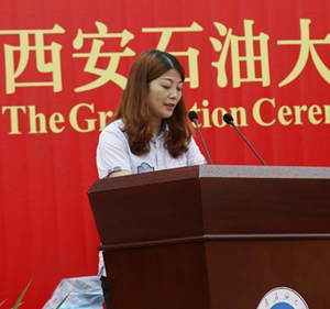 化學(xué)化工學(xué)院環(huán)境1502班彭蓉同學(xué)和儲(chǔ)運(yùn)1503班哈薩克斯坦籍熱妮婭同學(xué)分別代表全體畢業(yè)生和留學(xué)生發(fā)言。畢業(yè)生代表向?qū)W校“寸心基金”捐款4348元。