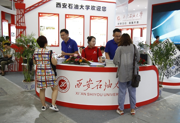 我校展區(qū)位于曲江國際會展中心核心展區(qū)A館,共有23項科研成果、15項研究生創(chuàng)新成果參展。展臺設(shè)計采用彩色圖文展板、科研成果實物展品、LED顯示、宣傳彩頁等多種形式,全方位展示了我校文化建設(shè)成果、教育扶貧成果、“互聯(lián)網(wǎng)+”大學(xué)生創(chuàng)新創(chuàng)業(yè)成果、科技成果及研究生創(chuàng)新成果,并著重突出了石油石化特色。校企對接洽談會上,我校石油工程學(xué)院王壽喜教授與陜西省天然氣股份有限公司簽約合作項目,部分教師與企業(yè)進行了對接洽談。為做好參展工作,由科技處牽頭,教務(wù)處、研究生院及相關(guān)職能處室通力合作、積極準備,按時提交資料,確保各項成果順利展出。各院(系)教師代表、招生辦公室工作人員、學(xué)生志愿者經(jīng)過認真地培訓(xùn)學(xué)習(xí),在展會上為廣大家長、學(xué)生提供了完善細致的信息咨詢服務(wù)。