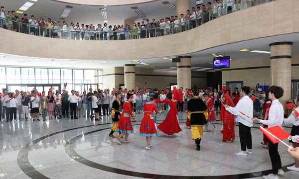 “我和我的祖國,一刻也不能分割,無論我走到哪里,都流出一首贊歌……”6月14日中午,我和我的祖國系列活動之“我愛你·中國”快閃活動在我校鄠邑校區(qū)圖書館大廳激情上演,我校五百余名師生用青春激揚的歌聲和優(yōu)美動人的舞蹈慶祝新中國成立70周年,抒發(fā)愛黨愛國愛校之情,表達為祖國建功立業(yè)的信心和決心。