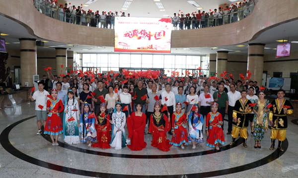 活動結(jié)束后,大家紛紛表達對祖國的祝福和對學(xué)校發(fā)展的信心。我校學(xué)生工作干部古蘭老師和我校土木1803班麥扎提·吾拉音、電信1801班吐爾洪·托合提同學(xué)同時用維吾爾語和漢語表達了對祖國的熱愛:“祝祖國繁榮富強!我愛你,中國!我愛你,我的祖國!”