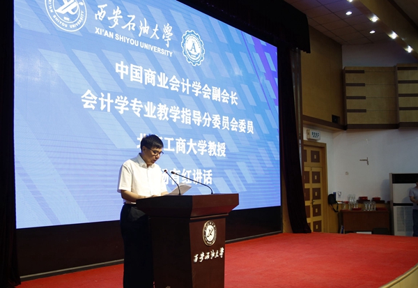 25日上午,開幕式在雁塔校區(qū)學(xué)術(shù)報告廳舉行。中國高等教育學(xué)會高等財經(jīng)教育分會副理事長兼秘書長張國才,中國石油企業(yè)協(xié)會專職副會長兼秘書長高潮洪,中國商業(yè)會計學(xué)會副會長、會計學(xué)專業(yè)教學(xué)指導(dǎo)分委員會委員、北京工商大學(xué)教授楊有紅,陜西省注冊稅務(wù)師協(xié)會副秘書長任玉華,西安財經(jīng)大學(xué)校長方明,我校副校長陳軍斌、楊戰(zhàn)社等出席開幕式。特邀嘉賓、媒體記者及參賽師生300余人參加開幕式。楊戰(zhàn)社副校長主持開幕式。