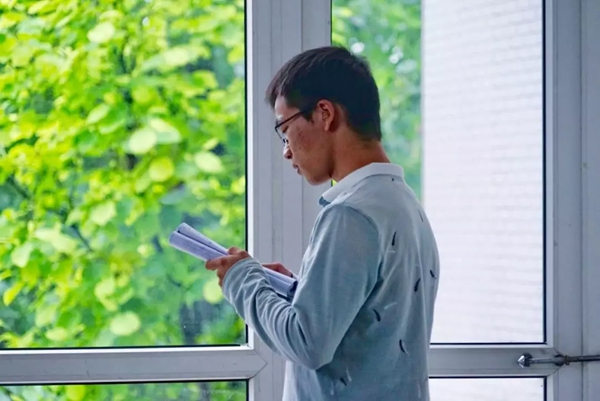 “考研的前一個(gè)月,我特別慌亂,特別焦慮,覺(jué)得好多都沒(méi)準(zhǔn)備好。我每天在B樓頂層樓道瘋狂地背英語(yǔ)背政治。”詹立貴以調(diào)侃的口吻回憶著那段難忘的經(jīng)歷,“有時(shí)候也會(huì)痛苦地背不下去,就干脆坐在樓道臺(tái)階上,玩玩手機(jī),和朋友一起吐槽考研。”