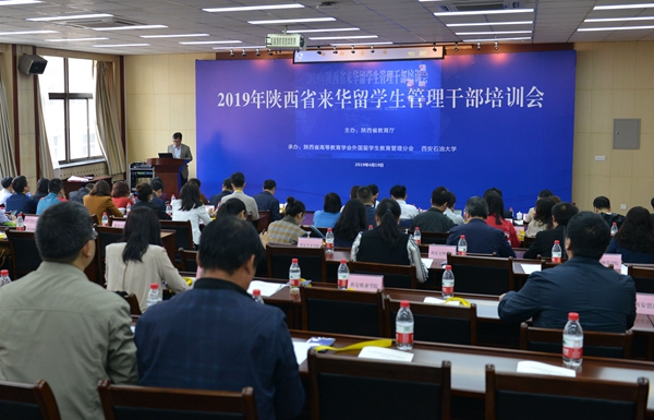 4月19日,陜西省來華留學管理干部培訓會在我校雁塔校區(qū)會議中心第五會議室召開。陜西省教育廳副廳長范永斌、陜西省公安廳出入境管理局副局長崔國正、我校副校長程永清以及來自全省40所陜西省高等教育學會外國留學生教育管理分會院校的80余人參加了會議。