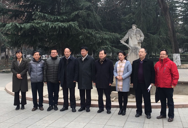 會談結(jié)束后,范九利書記一行與學(xué)校黨政領(lǐng)導(dǎo)在鐵人廣場合影留念。