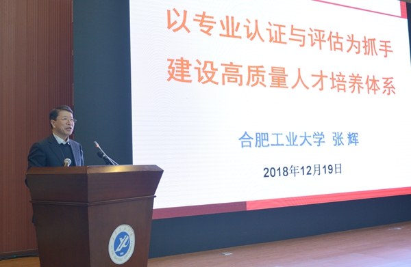會上,教育部儀器類專業(yè)教學指導委員會委員、合肥工業(yè)大學教授張輝作了題為《以專業(yè)認證與評估為抓手,建設高質量人才培養(yǎng)體系》的報告。他從“新時代教育教學改革的新要求”“專業(yè)認證與評估的內(nèi)涵與標準”“高質量本科人才培養(yǎng)體系構建”三個方面展開講解,對工程教育專業(yè)認證的核心理念、內(nèi)在邏輯、認證標準等方面作了詳細介紹,并對我校今后的本科人才培養(yǎng)工作提出了很多具有針對性和指導性的意見建議。