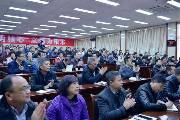 12月7日, “時代楷?!?、“全國師德標兵”、“全國優(yōu)秀教師”曲建武教授應邀來校作《做大學生人生成長的指導者和引路人》專題報告。報告會由黨委宣傳部和學工部共同組織,校黨委副書記張木主持,全校各院系書記、副書記、輔導員,學生工作部、校團委全體工作人員和馬克思主義學院教師參加了報告會。