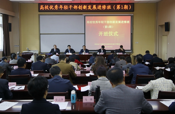 10月29日上午,陜西省高校優(yōu)秀年輕干部創(chuàng)新發(fā)展進(jìn)修班在我校明德校區(qū)順利開(kāi)班。省干教辦副主任郭文超、我校副校長(zhǎng)楊戰(zhàn)社、省委組織部干部教育處處長(zhǎng)馬亮及省委高教工委組織部副部長(zhǎng)王亞新出席開(kāi)班式。陜西省干部教育培訓(xùn)基地辦公室主任、繼續(xù)教育學(xué)院院長(zhǎng)郭崗彥主持開(kāi)班式。來(lái)自省屬高校的50名優(yōu)秀年輕干部參加開(kāi)班式。