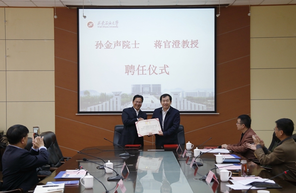李天太校長對孫金聲院士和蔣官澄教授訪問我校表示歡迎,對他們受聘為我校的特聘教授、兼職教授表示感謝。他說,孫金聲院士、蔣官澄教授長期致力于石油與天然氣工程學科的研究,與我校的特色學科有很大的契合度,希望孫院士、蔣教授對我校的學科建設、人才培養(yǎng)、科學研究、師資隊伍建設等方面工作給予更大的支持和幫助。