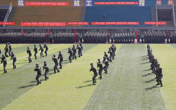 9月21日上午,我校2018級本科生開學典禮暨軍訓匯報會在鄠邑校區(qū)東體育場舉行。校黨政領(lǐng)導賽云秀、李天太、李延平、張木、雷西合、楊戰(zhàn)社、陳軍斌,中國人民解放軍32144部隊副政委徐洪剛上校出席大會。各院(系)及相關(guān)部門負責人、承訓官兵、2018級全體新生參加大會。大會由副校長陳軍斌主持。